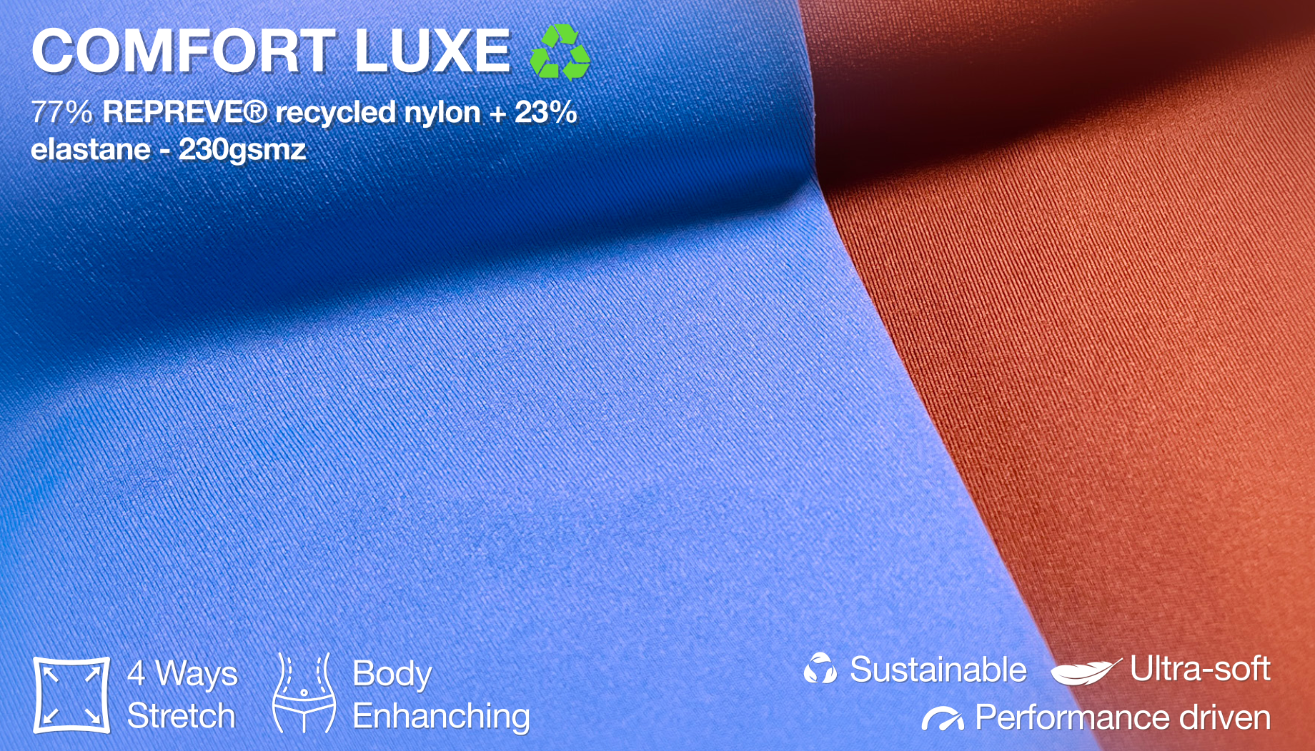 Made from 77% REPREVE® recycled nylon + 23% elastane, with a silky-smooth 230 GSM density, this fabric delivers that "second-skin" feeling you know from premium brands like Lululemon or Alo Yoga. With 4-way stretch and body-enhancing fit, COMFORT LUXE moves with you, sculpting, supporting, and breathing through every pose. Designed for yoga, pilates, and your everyday flow. This is the new standard of luxury activewear proudly by ICON INDONESIA
